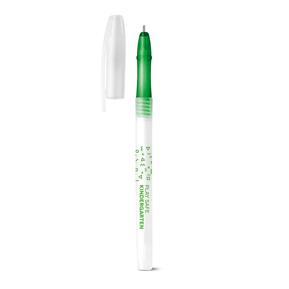 • Esferográfica em PP com ponta colorida e tampa transparente.